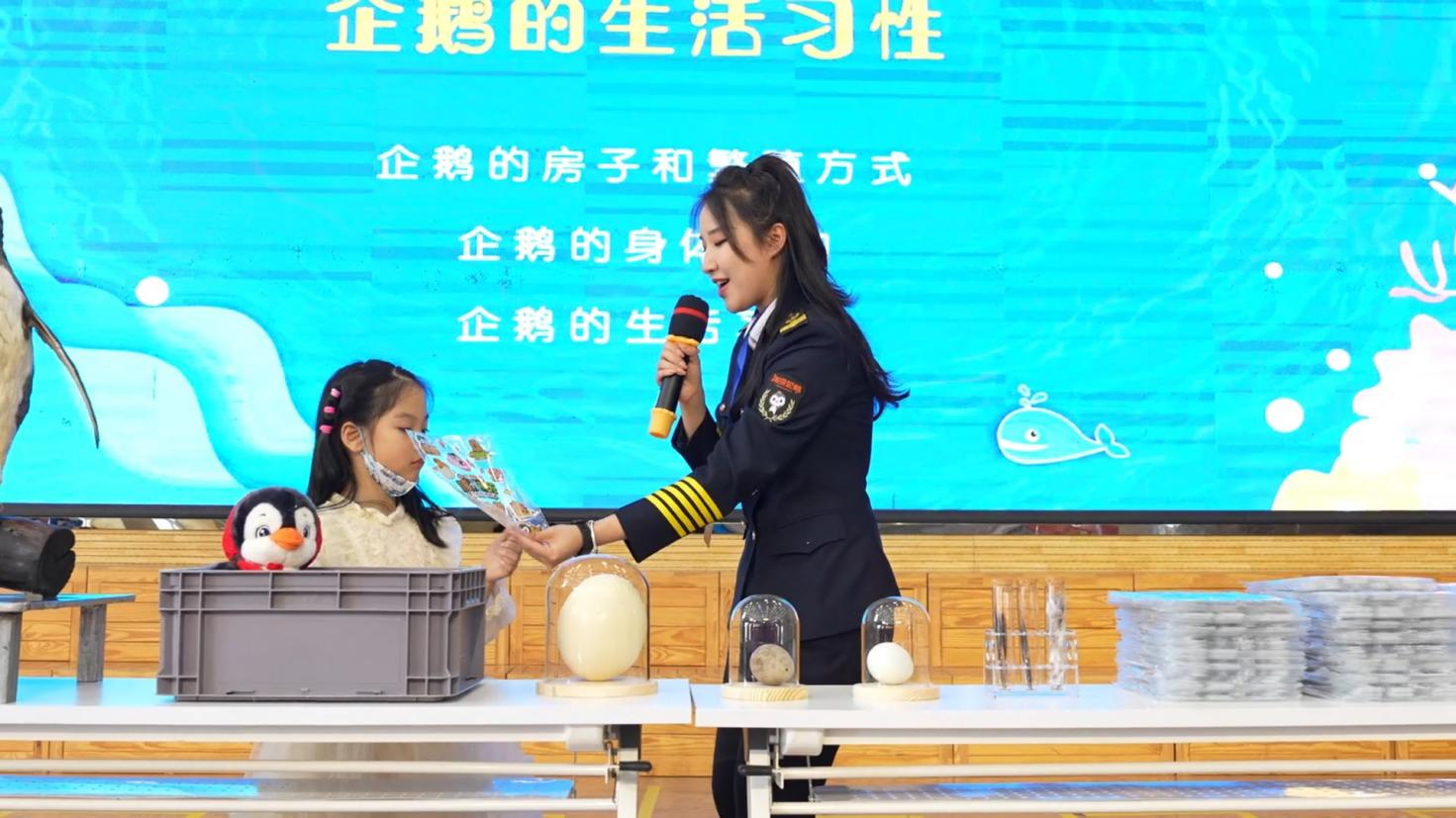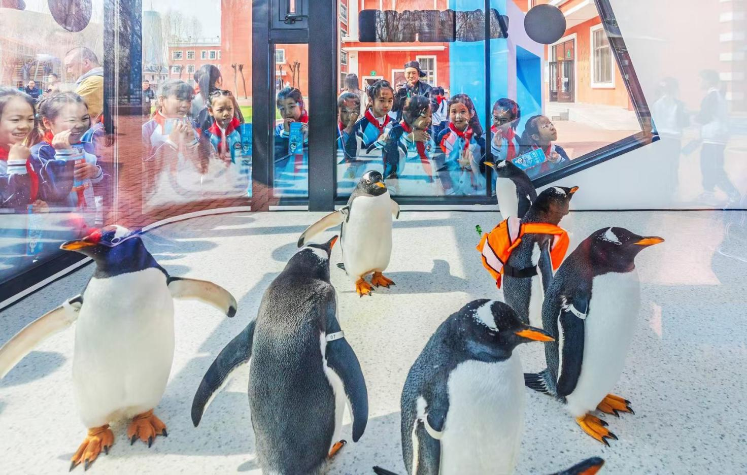 4月17日,哈尔滨极地公园打造的全国首个“淘学企鹅校园巡展”活动走进哈尔滨新区师范附属小学